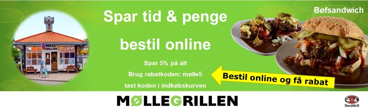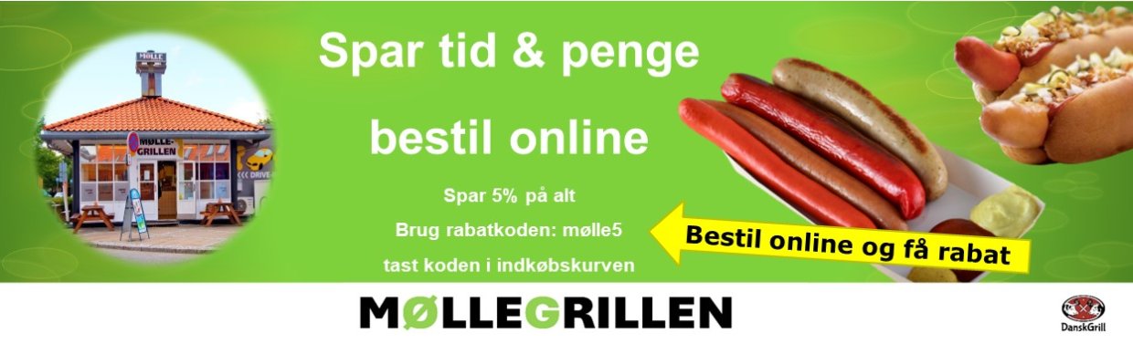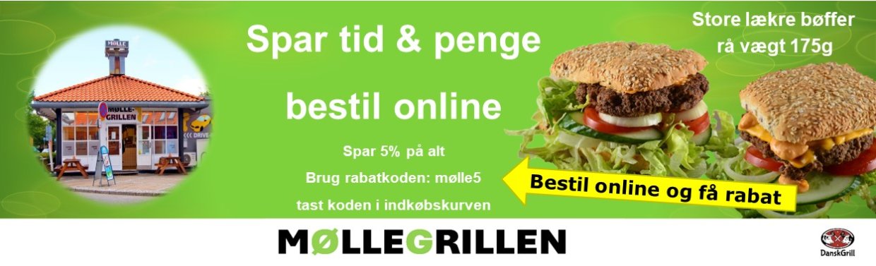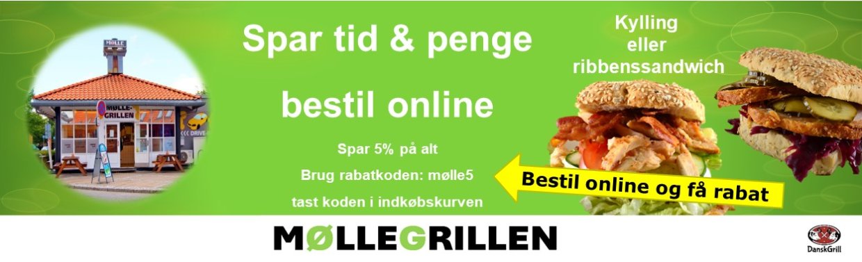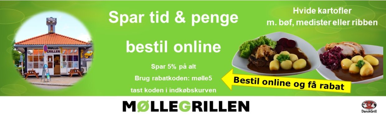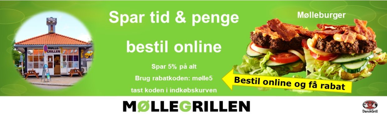 VI GIVER 5% på alt ved køb og bestilling online, brug rabatkoden "mølle5" i indkøbskurven