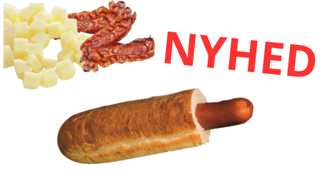 Fransk hotdog m. 80g ristet pølse med 11% Bacon og 8% Cheddar